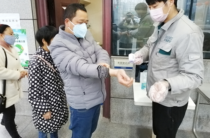 ??????復(fù)工首日始,全廠進(jìn)行全面消毒,所有員工依次排隊(duì)進(jìn)行體溫檢測(cè)、登記、消毒等、并再次每人發(fā)放口罩。